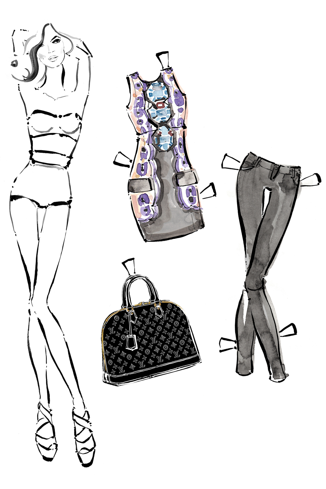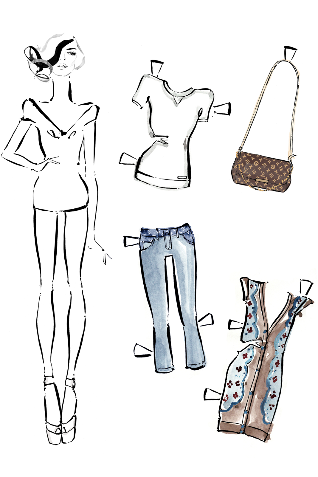 While we're pretty content to be salary-earning, driver-license-bearing adults, we sometimes miss the good old days. You know, when getting dressed up meant raiding Mommy's closet and a wild night was spent with your favorite dolls. Now it's more about raiding the piles of forgotten gems at the back of our own closets (though plenty of Mom's '70s hand-me-downs can be found in there) — but the dolls might be about to make a comeback, in the form of Louis Vuitton's ready-to-wear icons: a collection of babes on paper, complete with a closet full of luxury duds.