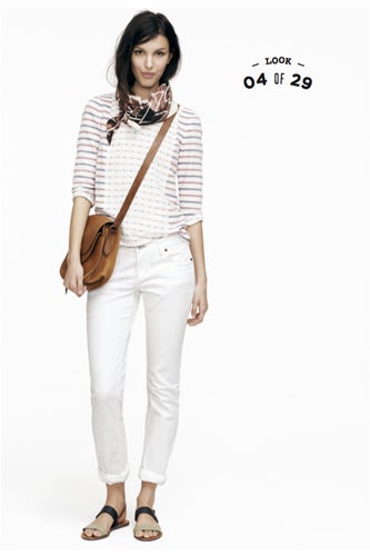 As we've come to expect from Madewell, the clothes aren't the only highlight: The lookbook is also chock-full of clever styling that we plan to ape at the first opportunity. Citrus-hued lace paired with denim, a white smock dress over crisp white jeans — and while we have grave doubts about our ability to mix camo print with pastel plaid, we'll give it the ol' college try. And, as usual, the messy-haired Madewell models make a great case for dry shampoo (especially our fave face, Jenna Lyons look-alike Michele Ouellet).