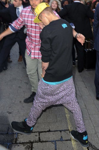 They say the shoes make the man, but in Bieber's case, it's the pants. His penchant for low-riding, shiny, and baggy breeches created a barometer for his social life. The crazier the controversy, the wilder and saggier the pants. Bieber's known for being swaggie (a term he invented for his single "Boyfriend"), but is he trying to distract us with his fancy pants? The answer is yes. Either that, or he's hiding something in them.