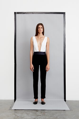 Yet, in addition to these awesome, bling-bling flourishes, Kayne's Resort '14 offerings have stayed true to what we know and adore. If you look beneath the gold, you'll find beautifully pared-down looks that render the final result utterly modern and unexpected. Other highlights include a most delightful fuchsia and bordeaux pairing, a charming bralette-and-pencil-skirt combo, a sharp tux-inspired jumpsuit, and the ideal white trench for summer. Click on through to view some of our favorite looks from the collection — it's a real showstopper!