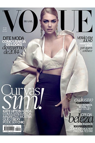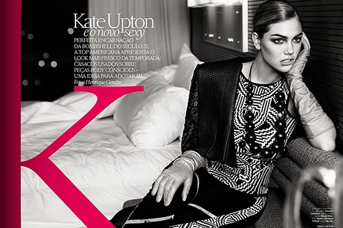 Some might bristle at the thought, but it's quickly becoming clear that Kate Upton is this generation's supermodel. She's in a league of her own, going from a scantily clad sex kitten to a high-class Vogue cover girl seemingly overnight. She's already covered Vogue three times in less than a year, with Vogue Brazil's July issue being her fourth (American, British, and Italian editions caught the Upton bug early). Here, she assumes the femme fatal role, trading in the Monroe tresses for a slicked back vixen look and a Miu Miu and Alaïa wardrobe. Honestly, we're continually impressed by her versatility and her effortless combo of sexy and chic — it's something we haven't seen since the heyday of the '90s. Somehow she manages to make even painted on swimsuits somewhat fashionable (heavy on the "somewhat").