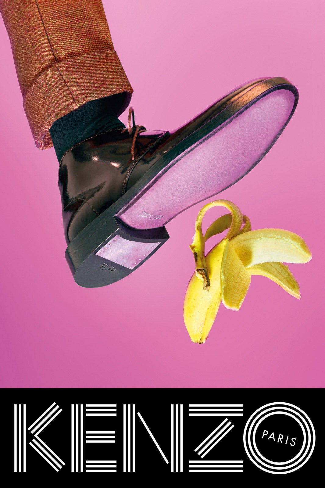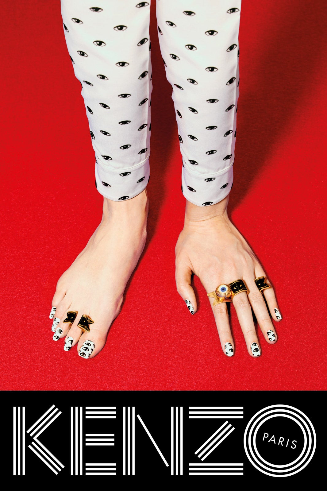 Toilet Paper chose a line with an equally eccentric style POV. The collab features miniature versions of Japanese actress Rinko Kikuchi and model Sean O'Pry dressed in Kenzo as they piggyback a pair of giant-sized female hands and lay helpless on a dissecting tray amongst a bunch of insects.