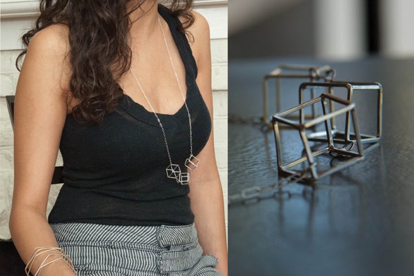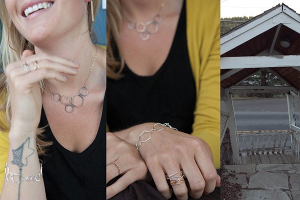 Butcher's love for airy, simple, three-dimensional shapes manifested into a collection of earrings, bracelets, and necklaces, dubbed Elaine B. The Denver native and VCU grad makes every piece herself, by hand, in a studio in downtown Charlottesville, but she's garnered plenty of fans in the D.C. area. And it's clear why: A hexagonal gold ring strikes the perfect balance between understated and interesting, while a necklace of 3D cubes feels elegant, yet thoroughly modern. We got a chance to chat with the designer and discuss her work, her future plans, and what she'd do with a dream day — prepare to be inspired!