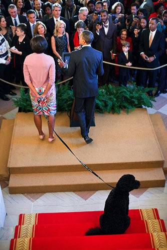 Despite political leanings and personal tastes, the interactions between our President and his pup are pretty darn heartwarming from either side of the bench. A stalwart pal, Bo has been seen in motorcades and parades, on Air Force One, and at the Easter egg hunt. So on his 52nd birthday, we wish our Leo-in-chief (Michelle is a Capricorn, no wonder she keeps him level) a happy day by rounding up our favorite flicks of the first dog...and his BFF, the President. (Plus, we've got a bonus photo of Bo that is literally the best thing that may have ever happened.)