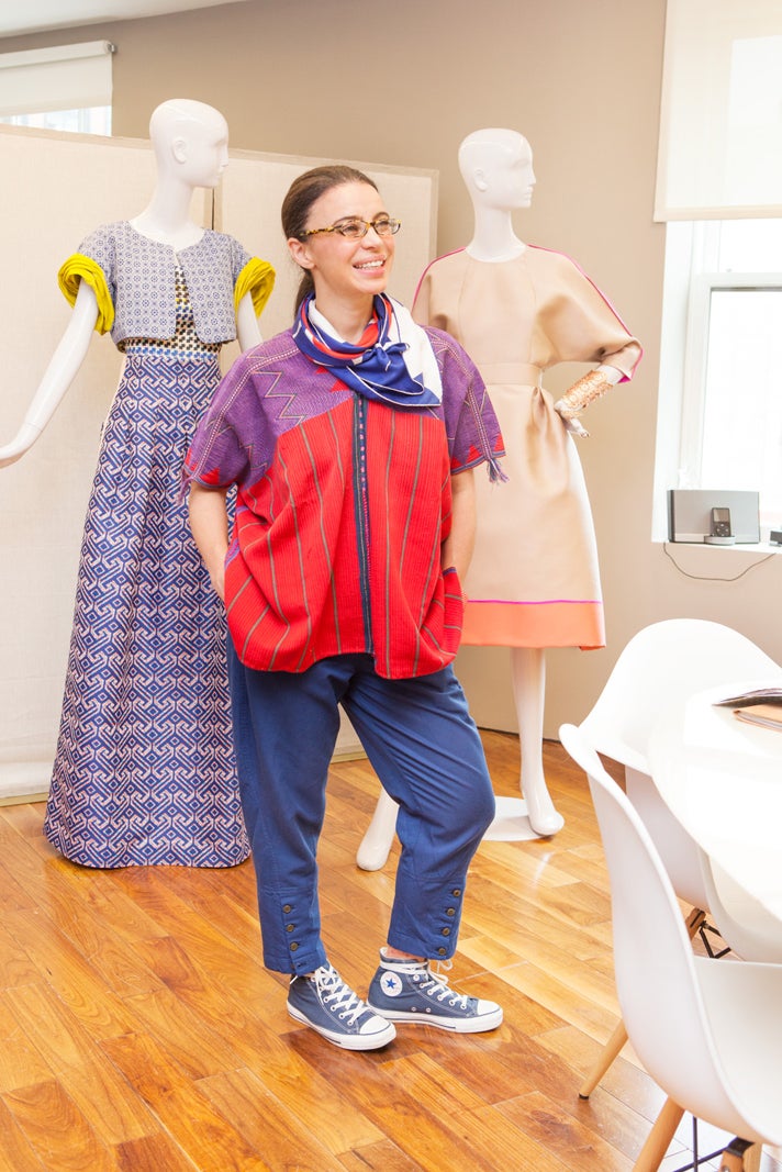 After a whole week of NYFW presentations, parties, and shows last month, the endless parade of heels, runway music, and even clothing started to blur together. But amidst all that commotion, there were a few up-and-coming shows that stuck out. One of them was Tia Cibani's spring '14 presentation. Her Frida Kahlo-inspired, confetti-filled party box of a show not only solidified Cibani — who used to serve as creative director of Ports 1961 — as one of NY's style game changers, but also brought the fun back into all that fashion. So, we had no choice but to follow up with an exclusive tour inside her design studio to pick her brain about how to pull off color, where to shop in NYC, and, of course, what to expect come fall '14. If it's anything like what we've seen so far, we might as well just pre-order it right. Now.