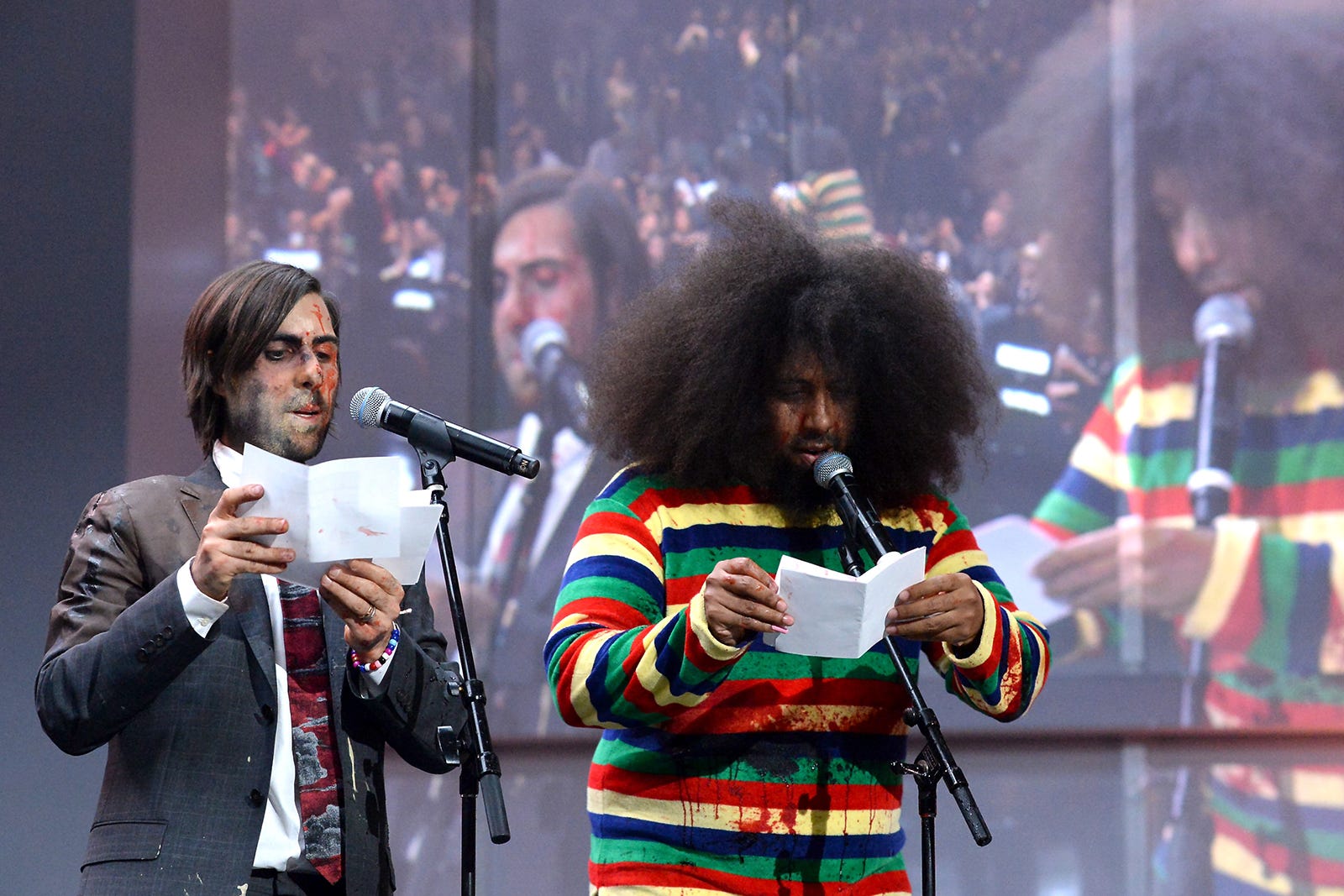 Under the creative direction of Spike Jonze, Jason Schwartzman and Reggie Watts paraded around various stages for 90 minutes. It was, to say the least, an exhausting endeavor that delivered exactly what it promised: unscripted one-take music videos sprinkled with some awards on the side. We mean that in the best way possible. The DIY aesthetic stayed true to YouTube's roots, and with all the awkwardness and seemingly unrehearsed acts aside, the whole production felt endearingly raw. Perhaps it was a different experience streaming it to your laptop, but from our post in the middle of the open-floor plan set, it was a whirlwind of musical genres and personalities. From Arcade Fire's Greta Gerwig music video to Gaga's stripped-down piano balled to M.I.A.'s tour de force Holi dust spectacle, YouTube nailed it.