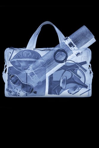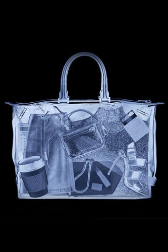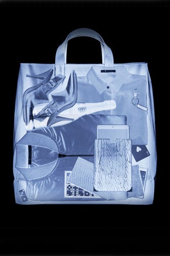 So, what'll you get when you visit the shiny, new Alexander Wang e-shop? Fresh navigation that's intuitive to click through, pretty product photography (shot on white!), and the highly anticipated Objects Collection No. 4, complete with a set of gold, stackable shot glasses, a marble "junk bowl," and a set of dice. Our favorite feature might be the TSA-X-rayed bags for every sort of Wang gal, including the "Snowed-In" (packed with little, silk slippers and nips of Jim Beam) and "Tropical Getaway) (with flatform sandals and a drink umbrella). However, we're pretty sure a few of those items (namely, that bottle of Champagne and the brass-knuckle mirror set) might get you pulled out of the security line, so exercise caution when filling up your own carry-on. Click over to shop the new site!