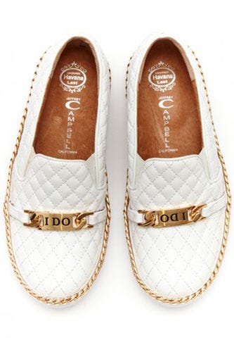 Trends, however cool in the moment, may not seem so rad 20 years down the road. While brides-to-be may have Karl's blessings, we want our wedding album to feel timeless, not dated by the clothes and shoes we wore. So, perhaps these cheeky Cold Feet by Jeffrey Campbell sneakers are a better option for pre- and post-wedding shenanigans instead of the actual ceremony. After all, what's a bachelorette party without those customary bridal-themed accessories?