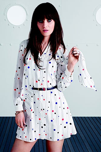 As reported in WWD today, the partnership came about when Deschanel met Hilfiger at a party. "Somehow, the conversation went from loving vintage to possibly doing a capsule collection with her." And, as of this spring, the resulting line — featuring 16 dresses — will officially be available in Macy's stores and on the Tommy Hilfiger website.