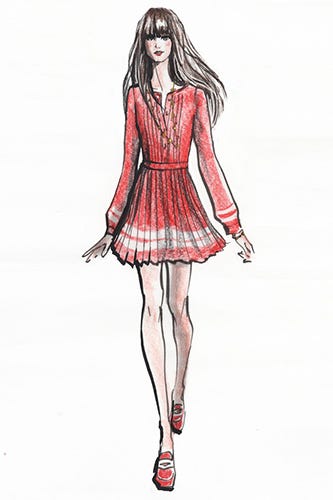 The "To Tommy, From Zooey" collection — priced from $98 to $199 — makes its debut on April 14. Click through to check out some of the dresses, along with sketches of the perfectly illustrated Deschanel sporting her signature bangs and all. (WWD)