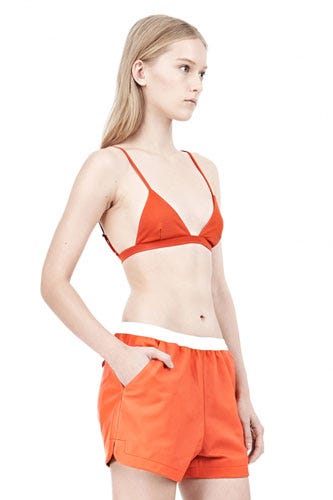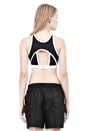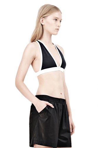 When you're Alexander Wang, the "rules" don't necessarily apply to you (ahem, Brooklyn Navy Yard). Instead, you kind of make them up as you go along. After all, being a leading innovator in today's fashion industry means you basically have a hand in deciding what is and is not cool. So, it's actually no surprise that his other line, T by Alexander Wang, would tackle one of our admittedly not-so-sexy undergarments and re-imagine it altogether. Yep: Wang is putting his spin on sports bras. And, no, you won't find these styles at the gym.