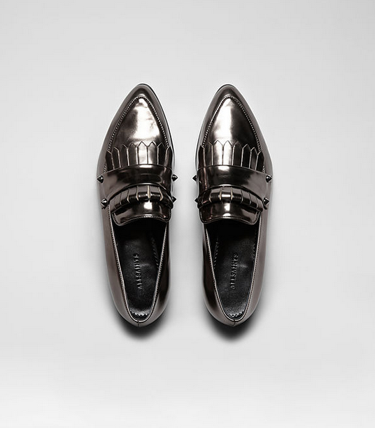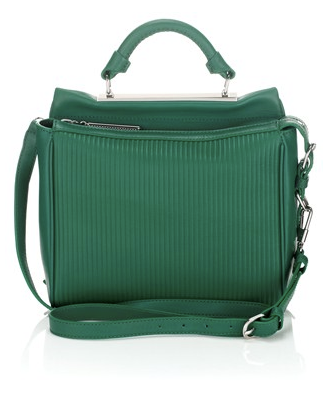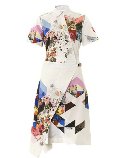 Preen Celeste Printed Shirt Dress, $1,403, available at Matches Fashion; 3.1 Phillip Lim Emerald Leather Ryder Satchel, $950, available at Avenue 32; Rebecca Minkoff Tulum Stud Hinge Bangle, $158, available at Piperlime; Topshop Slim Fit Tailored Blazer, $90, available at Topshop; AllSaints Kasia Loafer, $318, available at AllSaints.