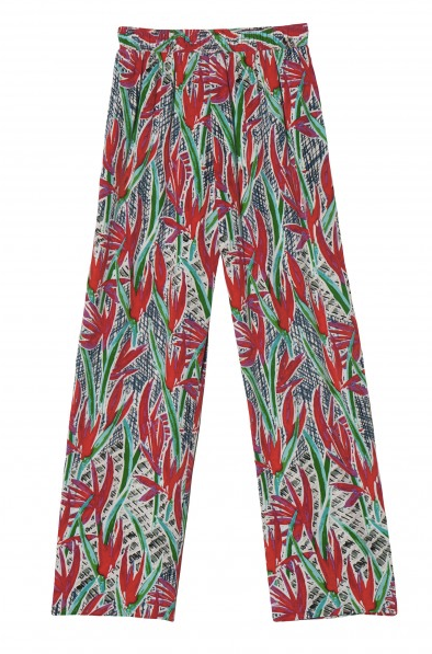 Kenzo Cubic Flowers Pants, $625, available at OTTE; Jane Norman Cap Sleeve Crop Top, $16.65, available at House Of Fraser; Delfina Delettrez Green Eye & Pearl Mono Earring, $691, available at LUISAVIAROMA; ASOS Highland Heeled Sandals, $75.28, available at ASOS; Topshop Slim Fit Tailored Blazer, $90, available at Topshop.