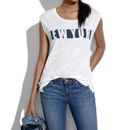 Stella McCartney Tomboy Distressed Low-Rise Boyfriend Jeans, $375, available at Net-A-Porter; Madewell Linen NY Stencil Muscle Tee, $45, available at Madewell; Elizabeth and James Cynnie Micro Cross Body Bag, $295, available at Shopbop; Saint Laurent Leopard-Print Canvas Slip-On-Trainers, $395, available at Matches Fashion; Topshop Slim Fit Tailored Blazer, $90, available at Topshop.