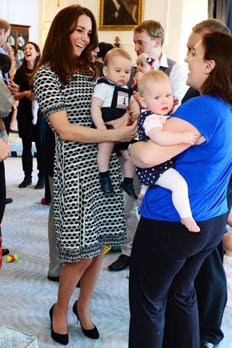 Clearly, the Kate Middleton effect is alive and well. The duchess wears something, and it subsequently sells out everywhere. But, really, who else could incite such a shopping frenzy? Although, let's not overlook the seriously cute sailboat shortalls Prince George is sporting for his first official engagement — this is one baby that came dressed to impress. (And, those chubby cheeks are just too adorable.)