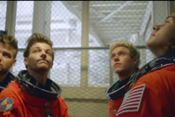 The video itself is pretty straightforward. The boys go through space training, Harry bonds with a robot, and eventually, they all don orange spacesuits and hop into a spaceshuttle. They're probably hovering somewhere around Mars by now.