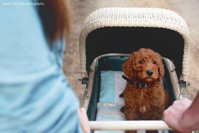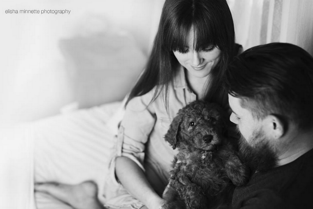 There are many ways a couple can get well-meaning friends and family to stop asking when they plan on having a baby. The couple can politely ask them to stop, they can send mass emails with links to essays on elective childlessness, or, they can have a professional "new baby" style photo shoot, featuring their beloved puppy.