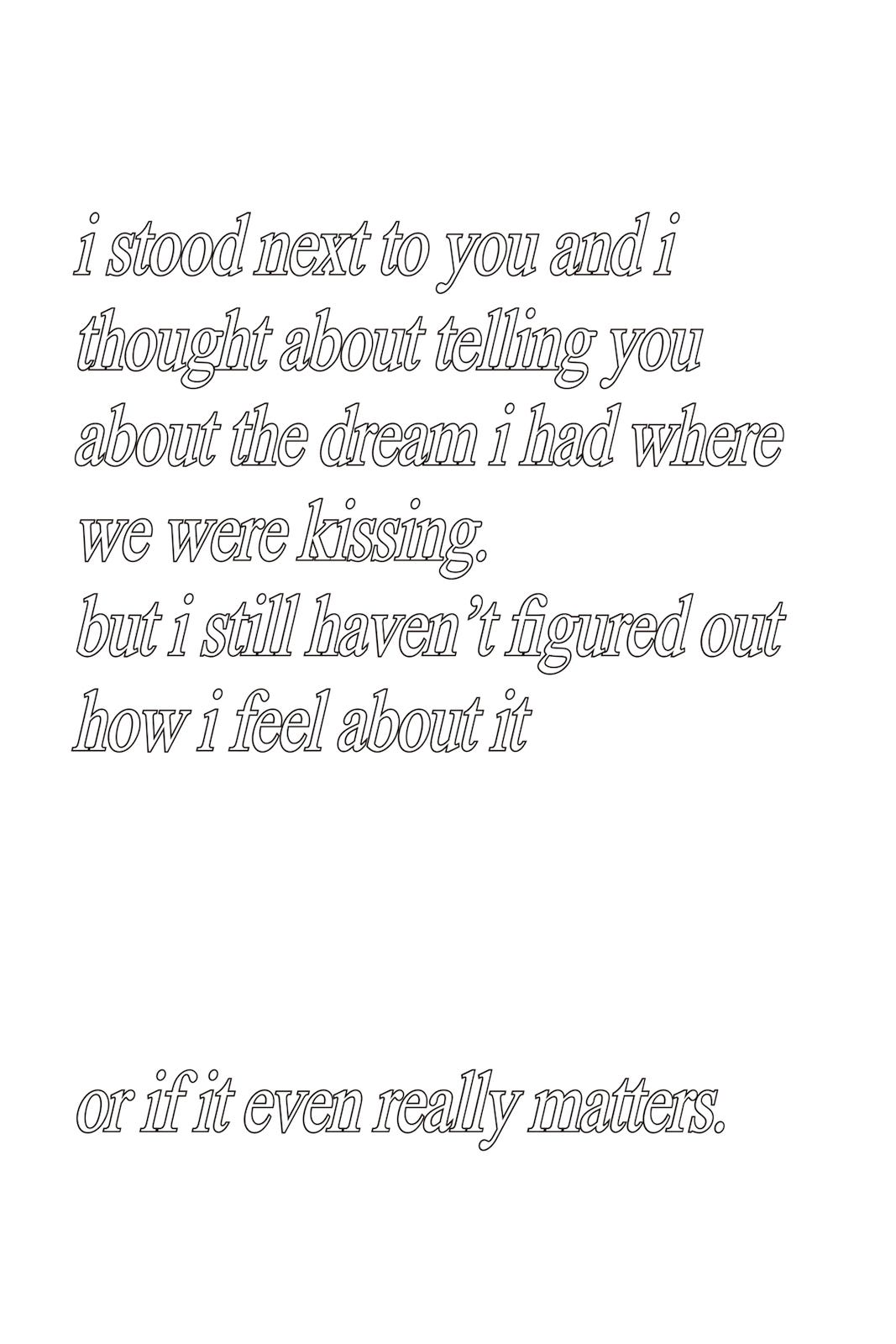 "I believe if you’re embarrassed about something or you feel a little bit shy or weird about something, the best way to deal with it...is to put it out there and let it exist...I wanted to use things that I was even a little bit apprehensive or shy about...I felt like I had a lot of text or poems on my phone, and I was like, 'Oh, I don’t really want to post these anywhere. It’s a little too emo. It doesn’t really feel right.' So I decided to make the zine in order to deal with those feelings."