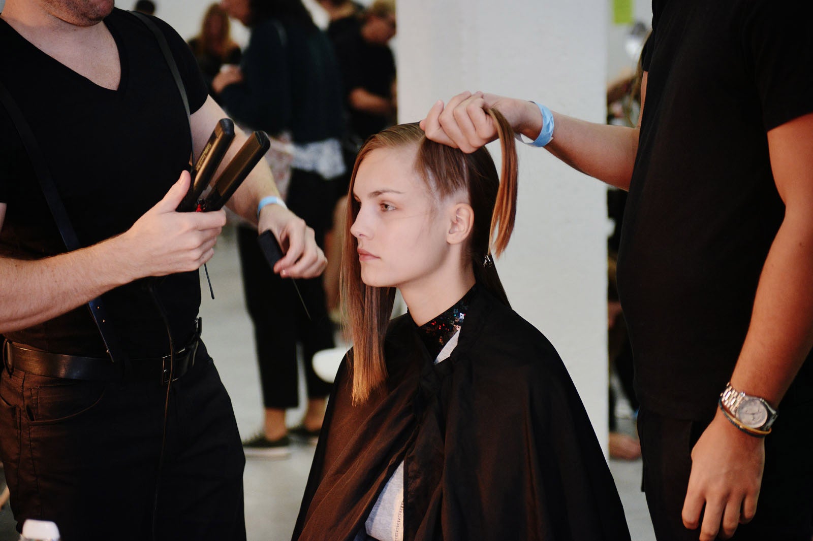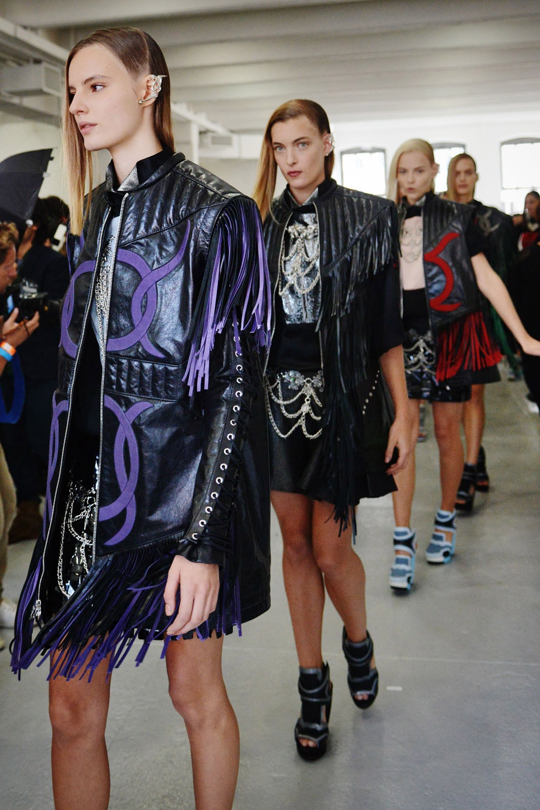 The shapes felt medieval (embroidered bodices, floor-length gowns, layered shingled skirts), but if King Arthur approved the silhouettes, it was Captain Picard who provided the materials with glowing embroidery (made of lace and/or aluminum?), sparkling chain links, and wet-look mesh vinyl. Many of the oversized, color-blocked pieces were reminiscent of Balenciaga's nerd-gone-fashion-plate collection from last season, but it was slightly less '80s Dungeons & Dragons and a little more best-modern-day-Comic-Con-outfit, ever.