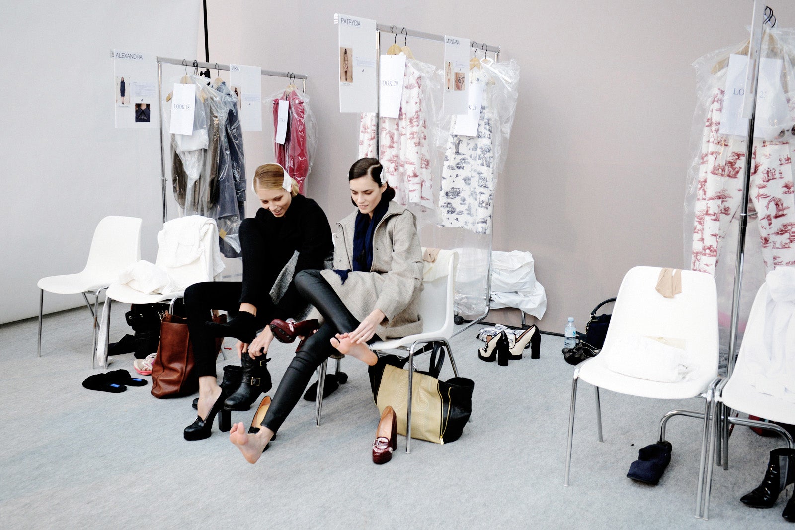 A solid winner at the start of Paris Fashion Week, Thursday's presentation welcomed a sea of oversized collars over cropped sweaters, streamlined outerwear, and the most strategic bean-shaped cutouts that make peekaboo more interesting than ever. With a glimpse backstage, as well, the details of Carven only became more pronounced. Fresh faces and swishing side parts were enough to inspire a new twist on minimal spring beauty. However, our favorite detail had to be the streaks of pink hair. Not pronounced, but just subtle enough to catch our eye, the small outside-the-box rosy tresses were the perfect amount of edge to amplify the proper, but not-so-prim Carven silhouettes.Photographed by Nina Westervelt/MCV Photo