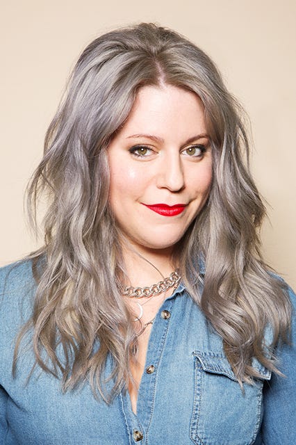 When my dear friend Tara Teschke told me that she was considering embracing the gray hair that started sprouting from her scalp by dying the rest of her hair to match, I was totally on board with helping her out and telling her story (especially since it had to do with identity, which is wrapped up in our hair). So, I set her up with my hair colorist, Lucille Javier at Sally Hershberger Downtown, for a full-on hair transformation. Here, she discusses why she decided to put her gray on display, her experience in the chair, and what it means to embrace your aging hair (as told to me).