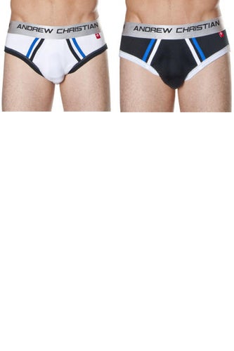 Baby, we know it's cold outside, and for all the dudes out there, that can lead to some unenviable shrinkage (yep, we just said shrinkage before noon). Until now, this winter weather meant winter willies, which, as we all know, means your package isn't exactly heavy freight material. Enter 2011: The plague of the last decade will hurt us no more, thanks to designer Andrew Christian, who humbly describes himself as "uber-trendy." You might (or, more probable, might not), remember Christian from such high-quality programming as The Janice Dickinson Project and The Fashion Show, and now he's destined for even more fame with his latest offering: The Shock Jock Flirt Boxer and Brief. These revolutionary new skivvies feature a soft hidden cup, sculpted into a penis shape (available in black or white models!), that adds around 2 inches to guy's frontal measurement. "Guys want underwear that looks natural, feels great and makes them feel confident," says Christian. Right. Bonus points for the extra wide metallic silver-colored sports elastic waistband and contrast stripes down the sides...just because. Unless you're sporting incredibly tight jeggings or thermal underwear, we're not sure just why you'd whip (hehe) your credit card out, but we'd love to be a fly on the wall when your pants actually come off. It's kind of like the male equivalent of chicken cutlets. "Oh that? That's just my anatomically correct cup!"