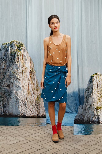 For Creatures of Comfort's latest collection, founder and designer Jade Lai fashioned an indigo-stained love note to the beautiful islands of the Mediterranean. Set against a beach-like backdrop of turquoise waves and sandy rocks, Lai's spring '14 designs of breezy, everyday wares have us dreaming of island-hopping and sun-basking — a little treat for those who finally had to succumb to breaking out the tights this week.