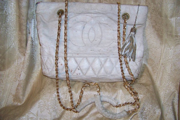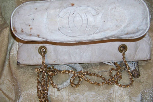 It's got cigarette burns, rust on the chains, ink marks on the bottom, and tears in the leather… but it's still a Chanel bag (an authentic one, the seller claims). Would you put down $118.40 for it?