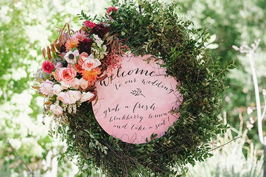 The ladies of Enjoy Events Co. seriously nailed it with the planning, design, and paper goods of Christina and Justin’s wedding. Isn’t that welcome message just the prettiest way to welcome guests, and guide them to grab a sip? Totally.