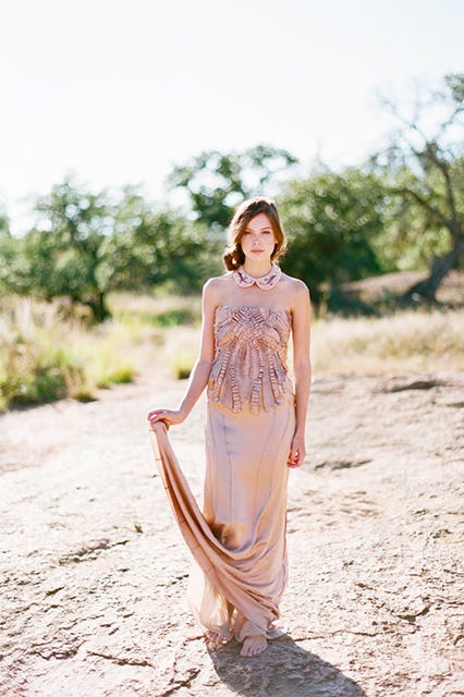 Soft light plays against a desert landscape to compliment a simple and natural design, making the spread perfect for the modern bride. And then, of course, there’s a gold sequin number we’re swooning over. You’ll see!