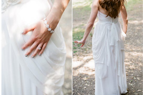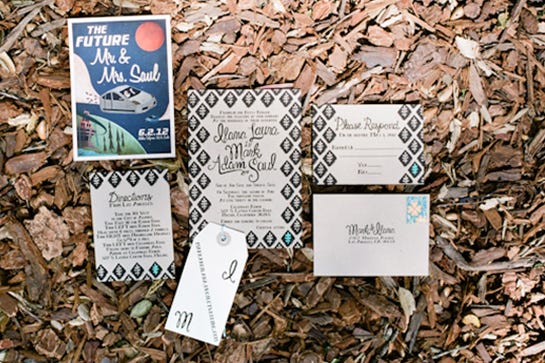 Ilana and Mark had been together for 10 years before getting hitched. So, in order to have a wedding that was an extension of their joint aesthetic — a very crafty and creative kind that loves decorating their home together — they used a mix of flea market finds, Anthropologie splurges, and their own crafty creations (invitations, folded books, pennant flags, fabric bunting, matching cake topper, terrarium centerpieces, and succulent escort cards). Yeah, these two got crafty.