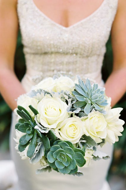Looking for examples of beautifully done DIYs? This Santa Barbara wedding is chock full of ‘em. Friends and fam came together to assist with everything from napkin settings to escort cards to the cake, while Maia created the pots for the seating assignments. Even the succulents came from the groom’s mother’s garden. How amazing is that? Maia says, "Every person involved in the wedding knew us personally, so it had a very intimate and personal feel." With so much support, the couple was able to snag photographer Daniele Rose of Lavender & Twine, who captured all the special moments of this SoCal wedding.