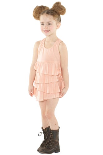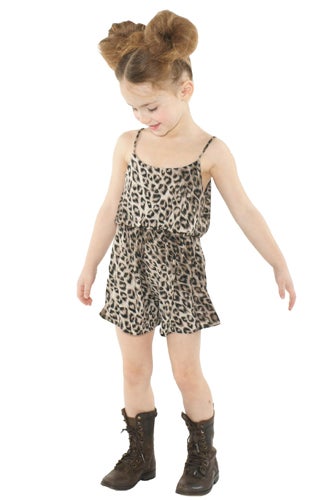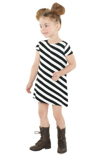We know you've been dying to keep up with the spring '11 lookbooks—kid lookbooks that is. And come March, it looks like the 12-and-under set will be dressed better than us, judging by alice + olivia's latest offerings for young 'uns. Apparently, prints are in: Of the six looks featured, four sport some kind of pattern, from a jumper done up in leopard to a horizontally striped dress perfect for an edgy tea party. Luckily, Stacey Bendet skipped the whole Toddlers and Tiaras thing, styling this adorable little girl in tough boots, (we. want. those.) two giant pom-pom buns, and the barely-there makeup. We especially love the tambourine shot, reminiscent of Kate Bosworth at Coachella. And while they don't quite make her size, we think other Hollywood style icons like Suri Cruise, Harlow Madden, and Honor Warren will be placing pre-orders now.