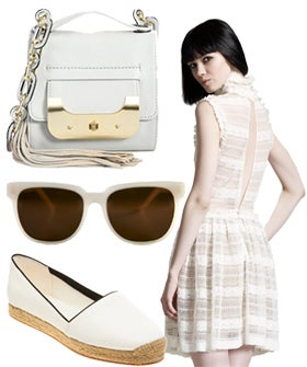 We were trying to explain to a lovely English girl in Montauk over Memorial Day how excited we were that we could now officially wear white. Cue up look of utter astonishment followed by hasty exit to the loo when we followed up with the automatic, "But only 'til Labor Day!" Okay, so we don't have to play by the traditional American rules when it comes to seasonal dressing, but it sure is hard to un-forget Mom's head-shaking when we wanted to sport our creamy lace pinafore before the first long weekend of summer. Old-fashioned sensibilities or not, we're fully embracing our permission-slip to go wild with white. We're still on a spree, looking to brighten up our wardrobe with ivory, magnolia, vanilla, and more in every which way, from a tan-loving watch to some denim cut-offs begging to be paired with some neon! Sure, those blinding skinnies may get dirty—but you've only got three months left in 'em anyways. Rules are rules.