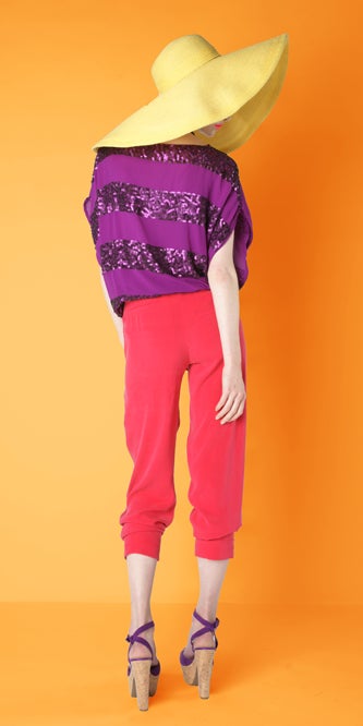 Swoon! Stacey Bendet has done it again. Here at the office we rang in Summer Solstice by ogling Alice + Olivia's Resort 2012 lookbook and, of course, we're smitten. In a departure from last season's more romantic, girly ensembles, the Resort '12 lookbook it all about retro silhouettes and saturated candy-colors that pack a punch. Mod dresses and maxi skirts are perfectly punctuated by wide-brimmed, divalicious hats, waists are defined by chunky belts, and funky plastic accessories complete the looks that all exude a modern play on the '70s trend that's oh, so popular. The purple jumpsuit definitely brings to mind sultry supermodel Veruscka, while the mini-mod dresses are Twiggy all the way. Perhaps what was most noticeable is the mix of black and white prints intermingling with the bold colors, which gives a sophisticated edge to this otherwise bright and playful collection. Sigh, we're so ready to take these retro looks for a spin at the beach immediately...can you say summer vacation?