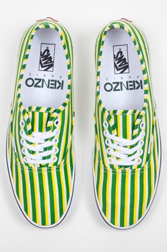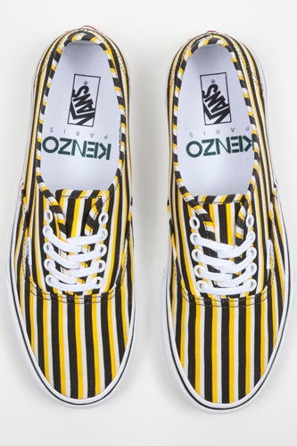 Forget stars, we've got stripes in our eyes, and the culprit remains the same. Hot off the success of their first collaboration, Vans and Kenzo are teaming up for a second time to remix the sportswear company’s original “sole-houette,” the Authentic sneaker, by injecting it with design master, Kenzo’s graphic patterns and punchy colors. The sneaks borrow the bright stripes and floral prints from Kenzo’s pre-fall and fall ’12 collections.