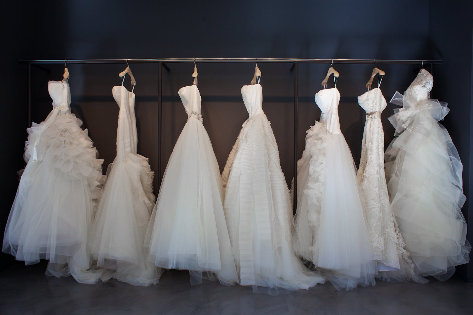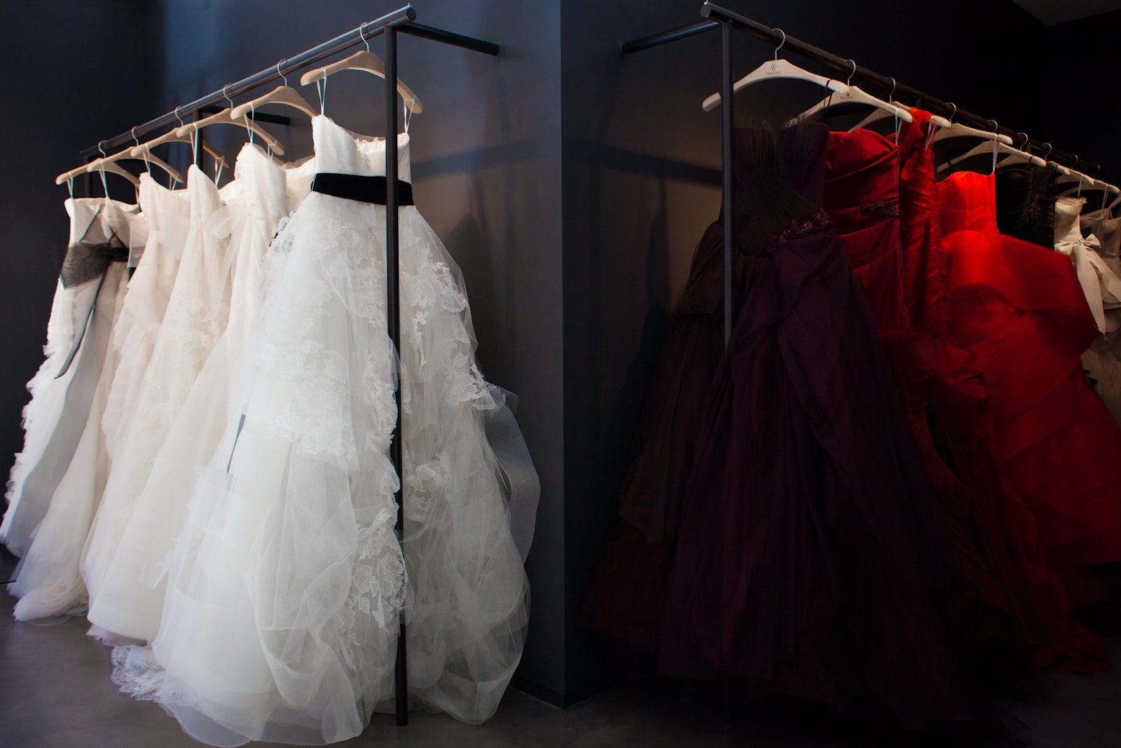 This is the first boutique in the Bay Area for leading wedding-gown purveyor Wang. Considering her love for S.F., it’s no surprise she decided upon settling into the 4,640-square-feet space (in the former Jessica McClintock store) overlooking all of Union Square. “It’s one of the most beautiful cities in the world,” says Wang. We really can’t argue with her there. The modern space presents a stark backdrop for the beautifully crafted dresses to really sing. The dark, concrete floors, walls, and large glass windows provide a sleek canvas for the intricate detailing of each garment. We toured the brand new spot in all of its understated, elegant glory and scored a handful of snaps of the gorgeous gowns and expansive layout. Get ready to gush!