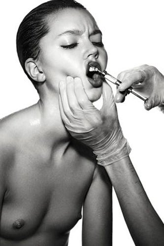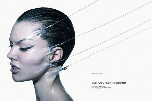 The best part of these shoots are always beautifying the "ugly": Baard Lunde's lens features a model with flawless make up, but the way in which her face and body are distorted becomes creepy. At the end, model Jordan Almen's gleeful, hysterical look is the only time she smiles — but is also the only time she doesn't have a contraption pulling at her skin. After injecting, plying, and cutting, we've got a manic, bandaged, and kind of insane version of beauty. Check it out. (Fashion Copious)