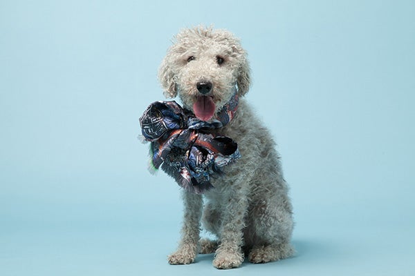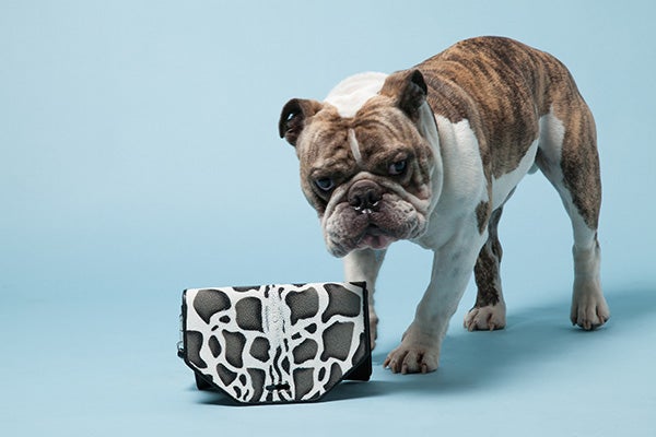 Papillon, the British bulldog, Pepper, the pug terrier crossbreed, and Wilfred, the Bedlington terrier, model items from the brand's accessory collection. Papillon manages to do the unthinkable — pull off wearing a cloche hat (a seriously tricky style), while Pepper captures our heart with not one, but two neon pink-and-yellow messenger bags. The only question we have in our mind: How much is a day rate for a dog-modeling gig these days? (Avenue 32)