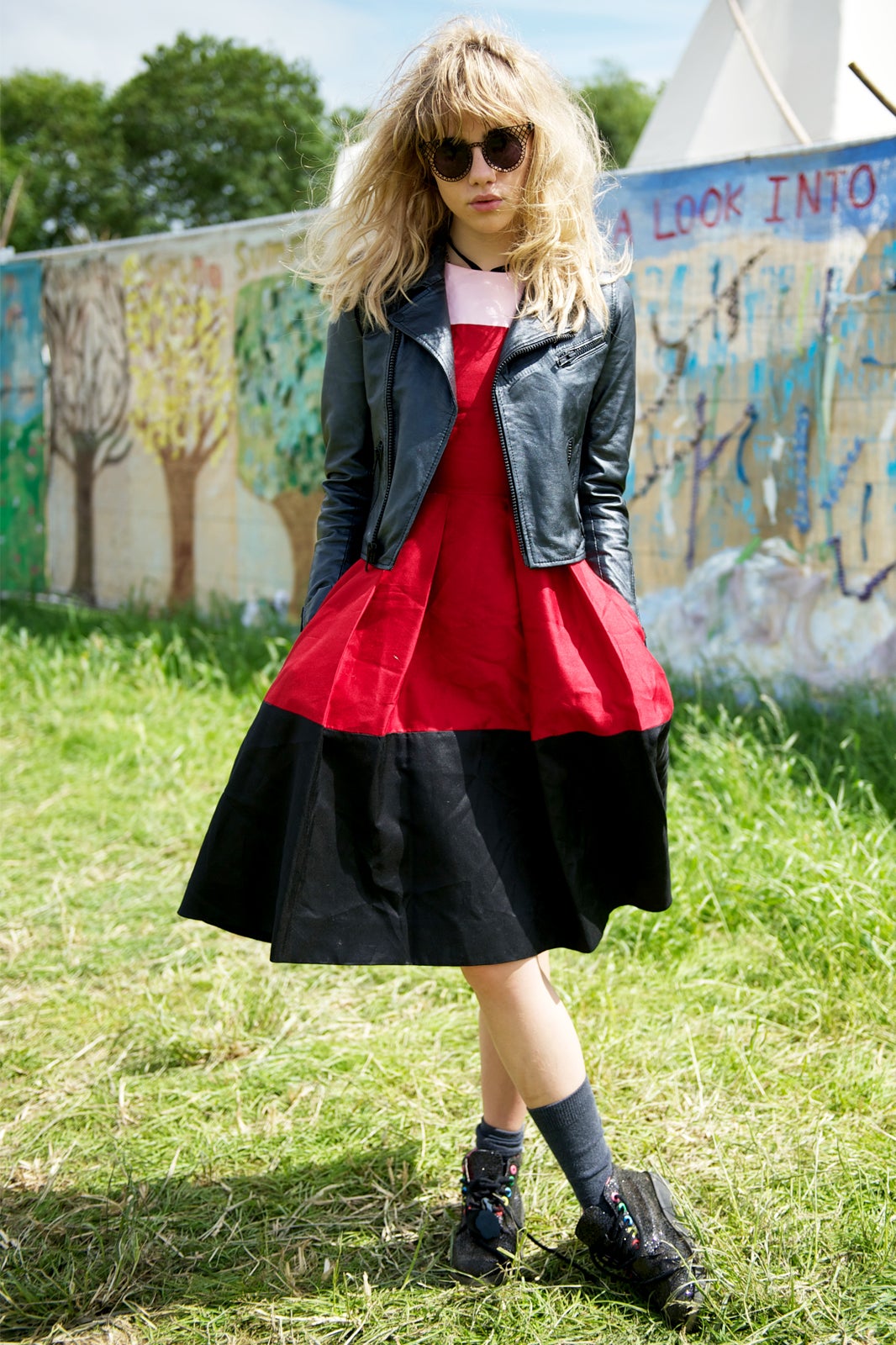 But, we can prolong the golden glow of peace and love emanating from Worthy Farm a little longer, by taking a look at the breathtakingly good outfits the festival-goers were rocking. From playfully sheer floral-print dresses to teeny-tiny short shorts, and of course, wellies galore, meet the outfits that redefine festival fashion. No matter the weather.