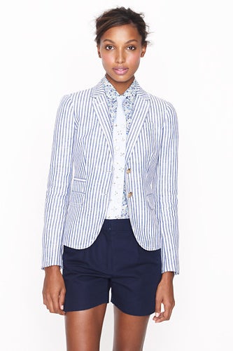 Whether you're into a bold, look-at-me shade or maritime-inspired stripes, we've culled nearly a dozen of our favorite go-to toppers that'll add polish to any outfit you throw together — even a plain, white tee and ripped skinnies. So, sleep in for another minute, these blazers have got your back — literally.