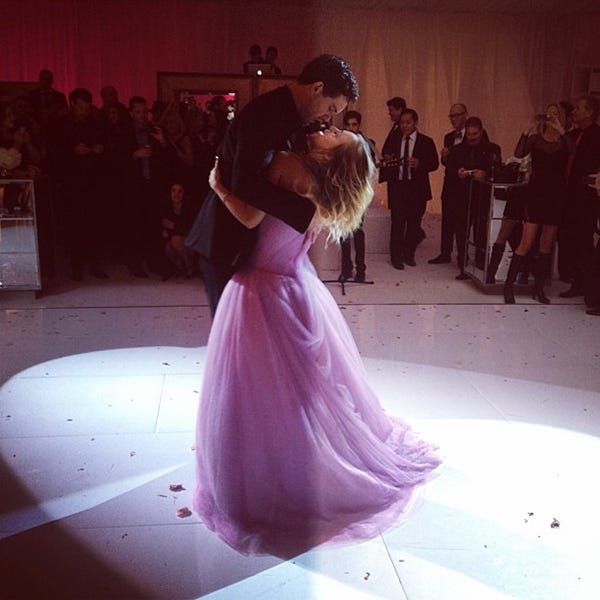 Talk about ringing in the New Year with a bang: Big Bang Theory star Kaley Cuoco pulled off a surprise wedding to her boyfriend of six months, tennis player Ryan Sweeting, on Tuesday night. Like most aspects of their relatively short relationship, Kaley’s dress was anything but traditional — the star rocked a frothy, strapless Vera Wang gown in light pink. And, like Gwen Stefani and Jessica Biel before her, she wore it well.