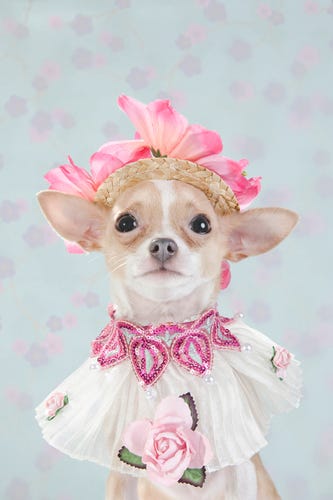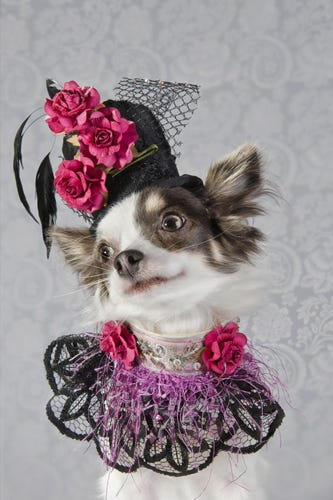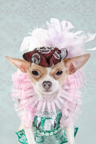 Granted, Dog Vogue is, for the moment at least, only a photo series shot and styled by Sophie Gamand of Striking Paws photography using incredible pieces provided by, "acclaimed pet couturier Anthony Rubio." But, surely, it's only a matter of time until Dog Vogue is squeezing people Vogue off of newsstands everywhere, breaking circulation records, and forcing Wintour to decamp Condé Nast for Cat Fancy. We mean, just look at those dogs. Even Cate Blanchett in Armani Privé can't compare.