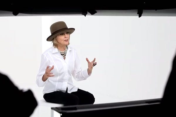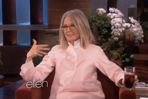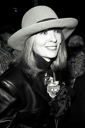 Here's a little-known fact: Diane Keaton actually directed an episode of Twin Peaks, because she is really that awesome. The star, who turns 68 today, has a reputation for being tremendously self-sufficient and private, but also incredibly involved, from acting to producing to giving us Pinterest-induced envy. Keaton has been in the spotlight for most of her life, and through those years, she has always been undeniably her. From a penchant for menswear inspired by Annie Hall (or, is it the other way around?) to those trademarked turtlenecks, we can recognize a Keaton classic from the other end of the red carpet. Similarly, her self-deprecating humor — a phrase Woody Allen uses to describe the actress — is what makes her so relatable and enduring. Even if she does drink red wine with ice...