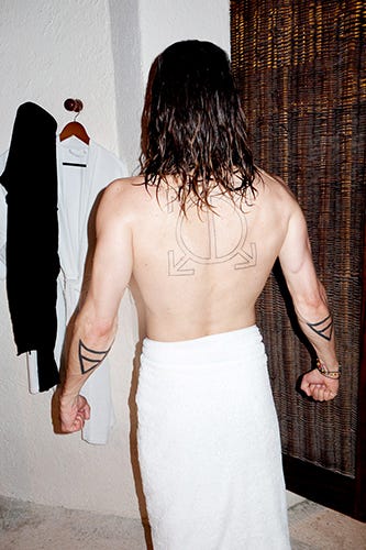 Jared Leto — excuse us — Golden Globe winner Jared Leto took a shower. Big whoop. But, wait a second, there are pictures! Oh, thank the Hollywood gods, pictures exist. Now we don't have to gratuitously Google "Jared Leto shirtless," for Terry Richardson has bestowed the goods on us without even asking.