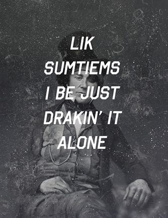 The American __tier rather brilliantly parodies the way we communicate by juxtaposing "Internet speak" with old Americana paintings. "The physical act of typing very fast on small devices has undeniably impacted spelling, grammar, and punctuation, encouraging a degree of illiteracy that has become the new social norm," Huckins says. "These additions do not signify the death of the English language, but rather as a growing and evolving method of communication which changes as does our world," he continues.