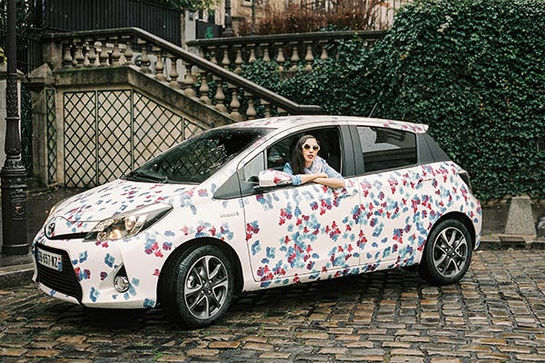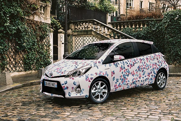 As Paris gears up for Fashion Week, the Japanese auto maker has teamed with some of the coolest indie labels from the City of Lights. Specifically, Surface to Air, Calla, and Cacharel have all lent patterns from their spring '14 collections to deck out the bodies of Toyota Yaris Hybrids. The result? Traffic-stopping style — figuratively, and possibly literally, speaking.