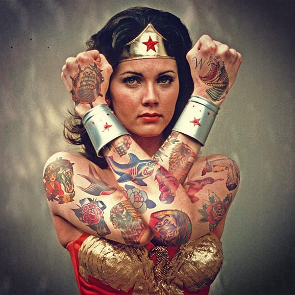Randall photoshops tattoos on famous celebrity portraits, basically transforming them into full-on hipster/Suicide Girls and Boys. His virtual tattoo gun doesn't stop at one, though: Randall gives full-body tats to the likes of Marilyn Monroe and Prince. Heck, even Prince William and Kate Middleton got inked.
