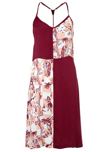 But, with deep oxblood serving as this set's major color player, don't expect to find any sweet pastels and overly feminine selections here. In fact, the tropical-meets-grunge vibe in this line is basically the antithesis of all those traditional warm-weather staples. And, that's definitely not a bad thing.