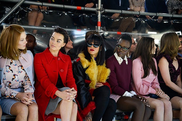 These are the ladies who front the brand's campaign, star in blockbuster films, and graciously accept Academy Awards. (Hi, Lupita!) While, to the naked eye, it looks like these members of young Hollywood are simply sitting pretty in their Miu Miu duds, there's more to attending PFW than just sporting the right ensemble. With their shining examples, we broke down all of the tips ahead. They'll be perfect for the next time you find yourself seated front row, sandwiched between Rihanna and an Oscar winner.